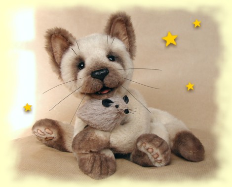 10,2 inches standing / 7,8 inches sitting plush - softly stuffed pellets / mineral shot / sheep´s wool airbrush accents / four skulpted paw pads 5- way jointed / wobble jointed head modelled tongue and teeth