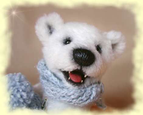 15 cm / Mohair Schafwolle - Mineralgranulat Biegbare Arme / Airbrush Akzente Gewachste Nase / Skulptierte Pfoten Modelierte Zunge & Zaehne Wackelkopf