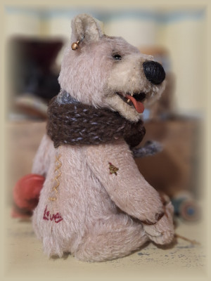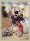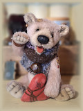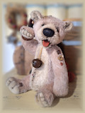 24 cm / Antik-MohairSchafwolle / Stahl.- MineralgranulatAirbrush Akzente / Biegbare ArmeGewachste Nase / WackelkopfModellierte Zunge / ZaehneSkulptierte PfotenEinzelstueck357 EUR